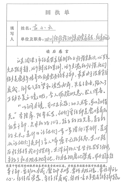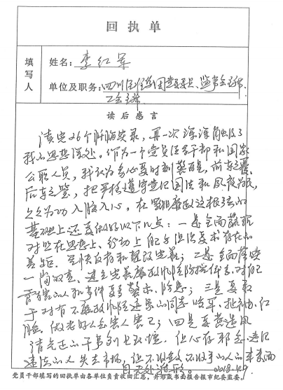 圖為黨員領導干部學習《懺悔錄》警示教育讀本讀后感