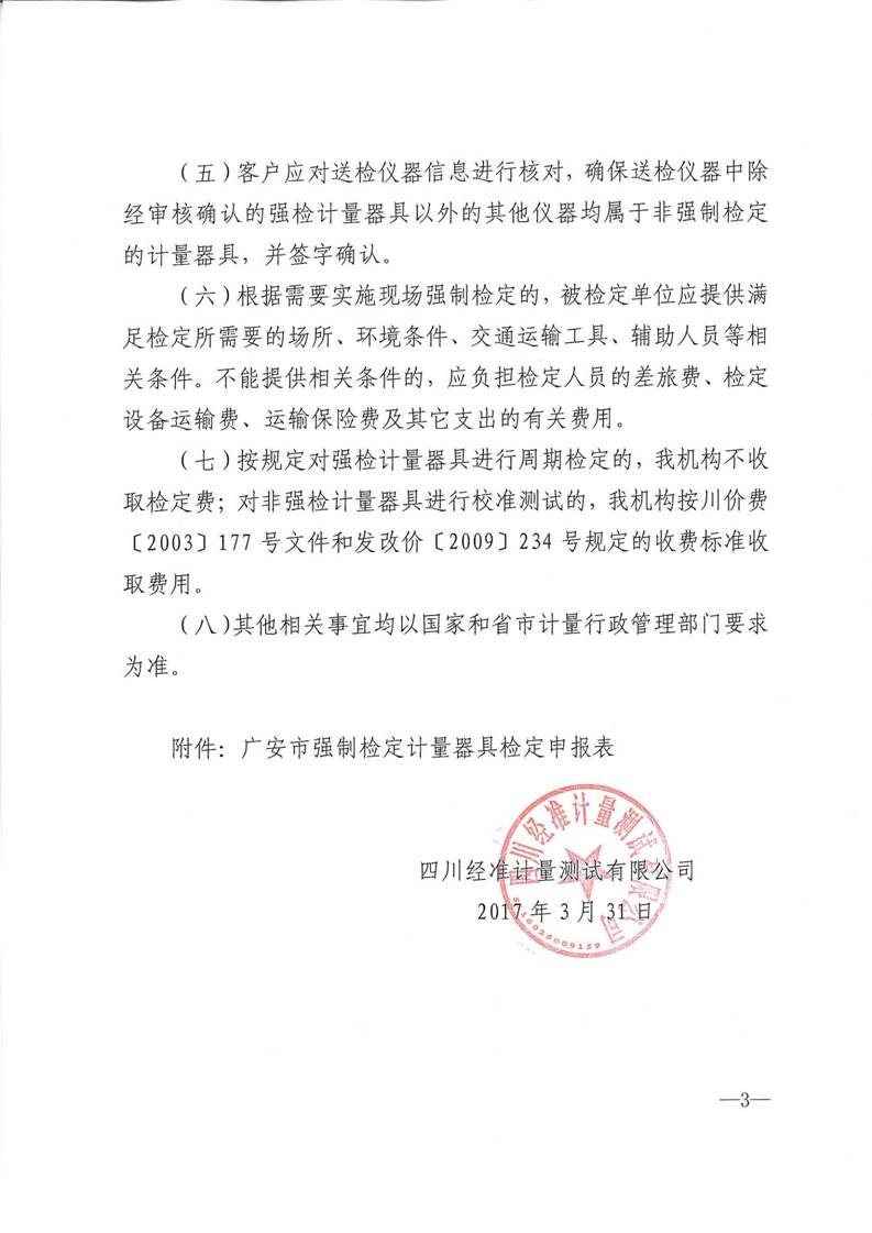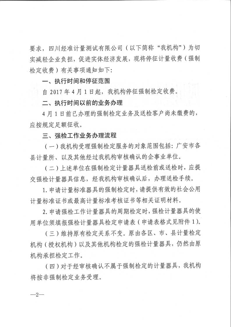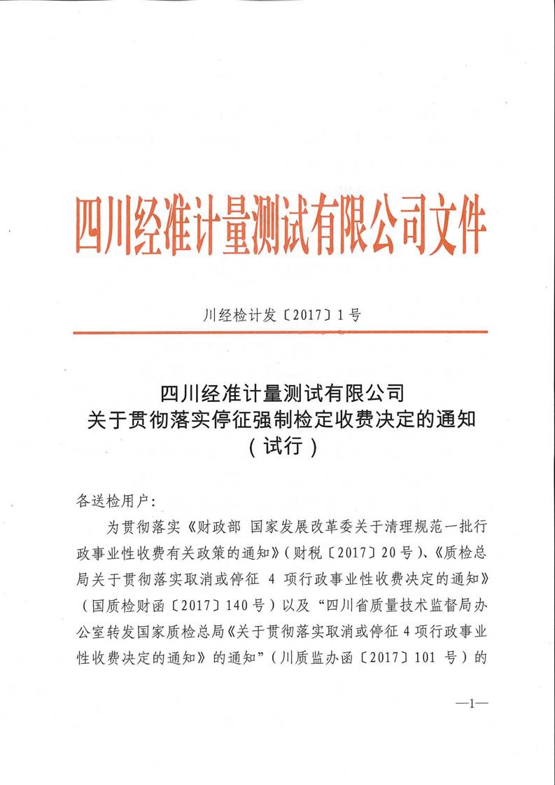 四川經(jīng)準(zhǔn)計(jì)量測(cè)試有限公司關(guān)于貫徹落實(shí)取消強(qiáng)檢收費(fèi)的通知