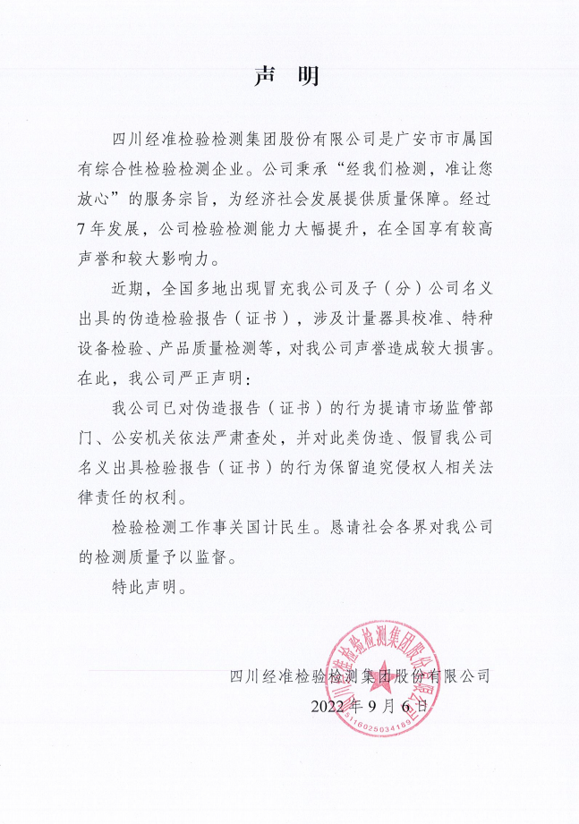 四川經(jīng)準檢驗檢測集團股份有限公司 辦公室:0826-2568088 業(yè)務(wù)部:0826-2321666 劉經(jīng)理:18081423757