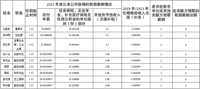 1.上表披露薪酬為我公司企業(yè)負(fù)責(zé)人報告期內(nèi)全部應(yīng)發(fā)稅前薪酬(不含發(fā)放的以往年度績效年薪)。