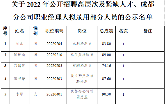 經準集團關于2022年公開招聘高層次緊缺人才及成都分公司職業(yè)經理人擬錄用部分人員的公示