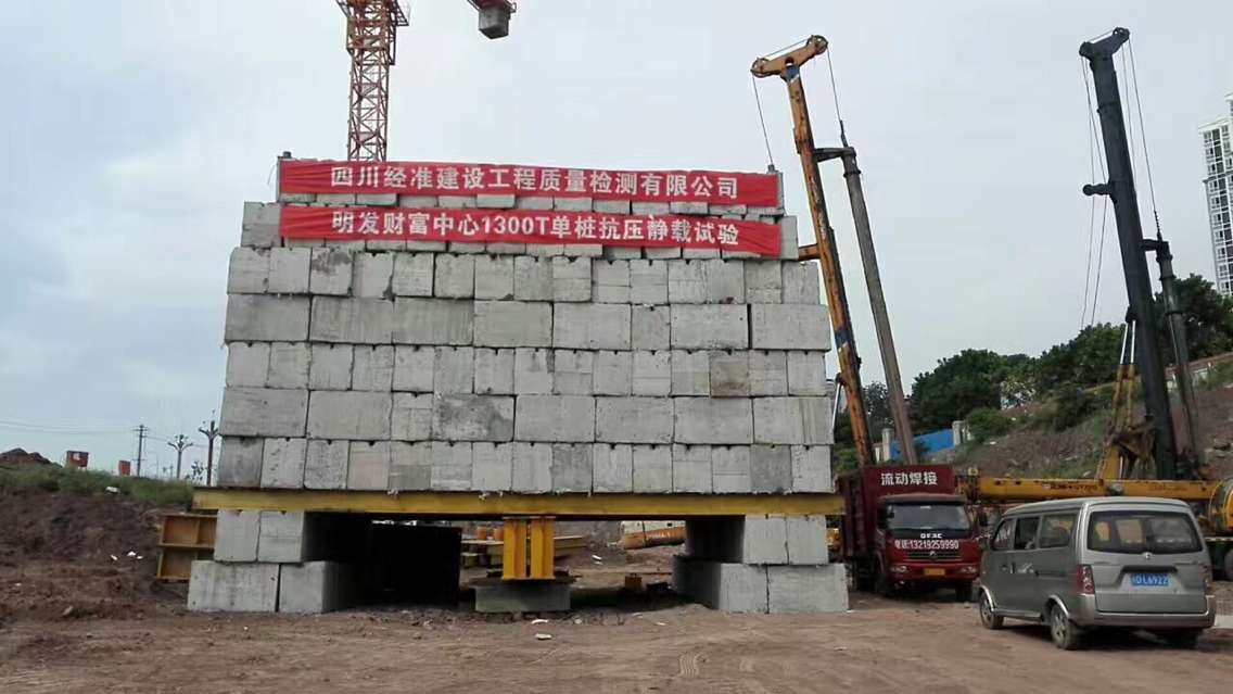 隨著建筑地基基礎(chǔ)采用旋挖樁工藝日益增多,大噸位基樁檢測(cè)手段更新升級(jí)迫在眉睫,經(jīng)準(zhǔn)建檢公司積極響應(yīng),精心組織,大力開拓創(chuàng)新,大噸位單樁豎向抗壓靜載試驗(yàn)取得新突破。近日,建檢公司首次在明發(fā)財(cái)富中心檢測(cè)項(xiàng)目中采用堆載法和自平衡法進(jìn)行單樁豎向抗壓靜載試驗(yàn),并取得圓滿成功。