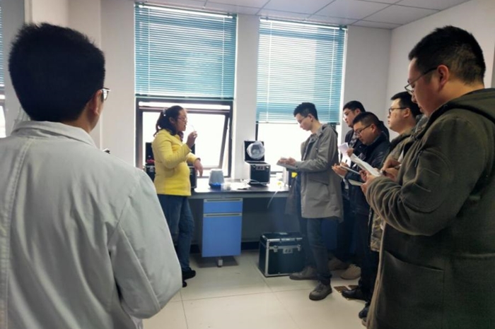 圖為設(shè)備廠家工程師對(duì)培訓(xùn)人員講解儀器操作流程