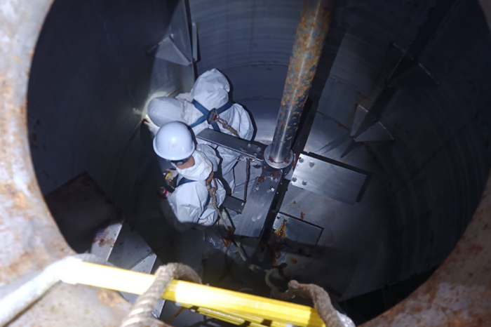近日,我公司正在對廣安市某化工廠進行壓力容器定期檢驗。承壓部抽調技術骨干嚴格按照檢驗規程和公司檢驗細則進行檢驗。在細致嚴謹的檢驗中,檢驗人員發現2臺碳酸鋰沉淀罐內表面覆合層有多處嚴重腐蝕坑和腐蝕槽,存在重大安全隱患,按照《固定式壓力容器安全技術監察規程》TGS21-2016評定為不符合要求。檢驗人員按規定出具了特種設備定期檢驗意見通知書(2),并按程序將安全隱患上報相關部門。同時協助使用單位對存在問題進行原因分析、安全隱患排查,并提出處理建議。本次檢驗及時發現設備缺陷,消除安全隱患,為企業安全生產提供了保障,得到使用單位的高度評價和認可。
