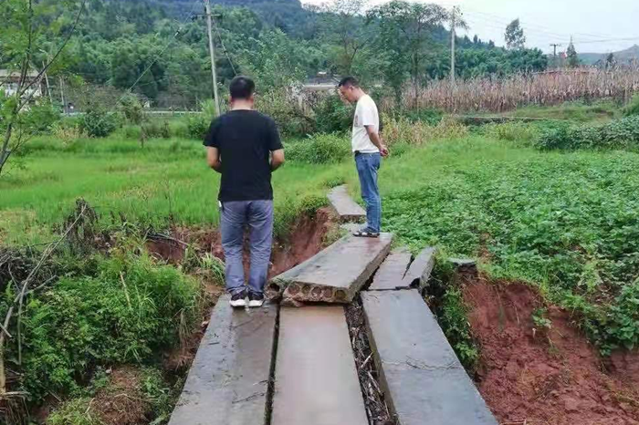 近日,受連續降雨影響,岳池縣高廟村部分田間橋梁、道路出現垮塌跡象。經準檢測集團派駐岳池縣九龍街道高廟村第一書記陶飛川切實履行第一書記責任,立即趕赴現場,會同當地村干部,查看受災情況,排查安全隱患,及時處置隱患點,全力保障了災情的進一步擴散。