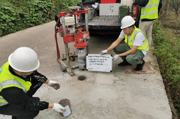 志愿幫扶檢測工作小組主要對井研縣、犍為縣蒲亭幸福美麗新村道路新建工程、美麗鄉村路工程、村道窄路基路面改造工程及村道生命安全防護等工程進行了現場質量檢測及取樣工作。