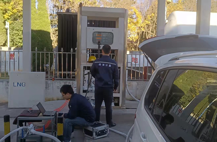 近日,經準計量分公司組織計量檢定人員到云南省昆明市云投集團新奧LNG加氣站開展現場檢定工作。