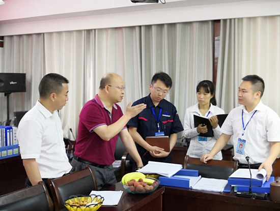 圖為公司人員與評(píng)審組長(zhǎng)進(jìn)行管理體系交流