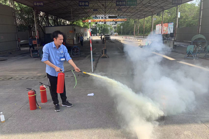 此次演練為高溫自燃起火,全體職工嚴格按照“一提二拔三壓四噴”的步驟規范使用滅火器撲滅火點,現場人員踴躍參與,熟練掌握了滅火器使用方法,演練過程有條不紊,達到了演練目的。通過演練,為今年“安全生產月”畫上了圓滿的句號,也為車檢分公司的檢驗檢測工作提供了安全保障,下一步車檢分公司將繼續在工作中踐行“安全第一、預防為主”的安全工作方針,杜絕安全事故的發生。