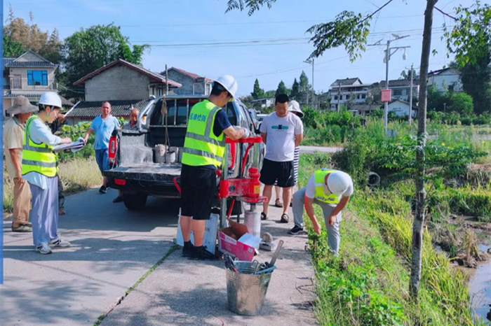 交檢分公司積極與南充市農(nóng)村公路管理相關(guān)部門溝通,超前謀劃,制定抽檢計(jì)劃,配備充足的檢測(cè)設(shè)備、車輛與技術(shù)人員。現(xiàn)場(chǎng)檢測(cè)時(shí),志愿幫扶檢測(cè)小組成員克服幾十年一遇的極端高溫干旱天氣,在做好自身新冠疫情防控的情況下,積極與農(nóng)村公路管理相關(guān)部門協(xié)調(diào)配合、結(jié)合當(dāng)?shù)靥鞖狻F(xiàn)場(chǎng)實(shí)際情況,有條不紊開展各項(xiàng)檢測(cè)工作,確保了本次農(nóng)村公路建設(shè)質(zhì)量技術(shù)服務(wù)志愿幫扶工作優(yōu)質(zhì)高效完成。