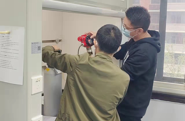 圖為可燃氣體報警器比對現場