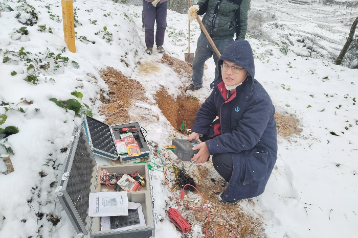 圖為對燃氣管道土壤電阻率和管道壁厚檢查現(xiàn)場