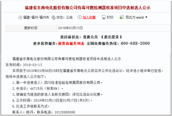 2019313日,計量分公司成功中得福建省東南電化股份有限公司有毒可燃檢測器校準項目,實現了沿海城市計量招標項目 “零”的突破,標志著公司業務已開始涉及沿海城市,為公司下步業務拓展指明了方向。