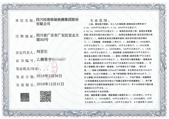 四川經準檢驗檢測集團成功取得乙級測繪資質