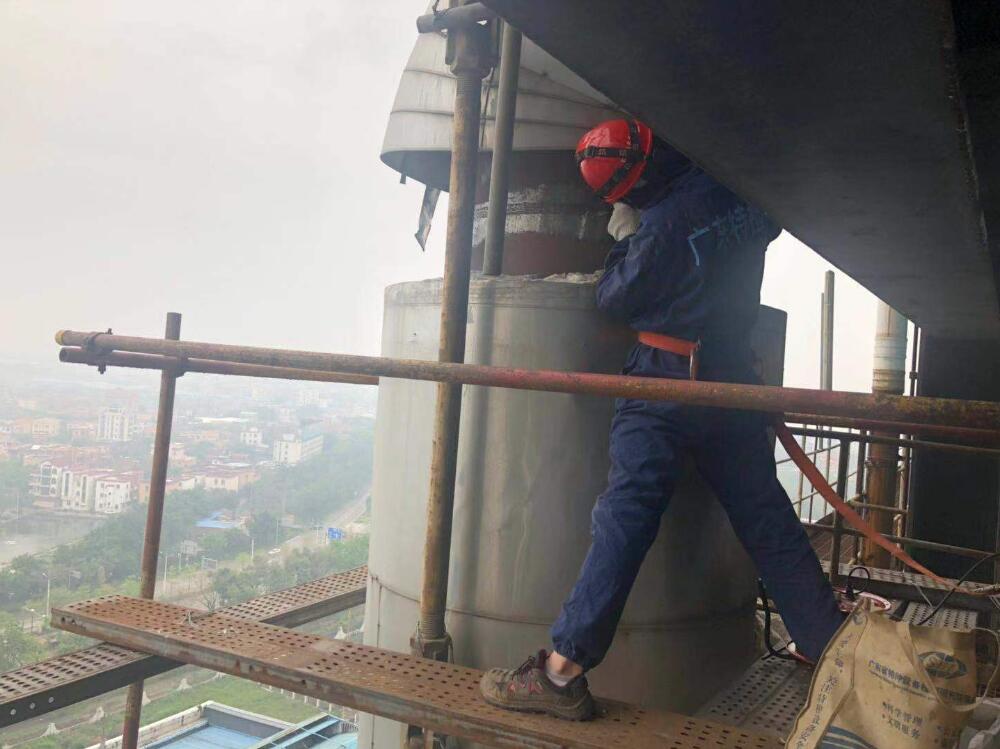 (圖為京能發電廠幾十米的高空作業,對管道進行金相打磨)