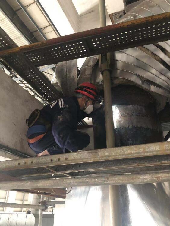 (圖為對爐膛內的再熱器、過熱器及其高溫管道進行探傷和宏觀檢驗)