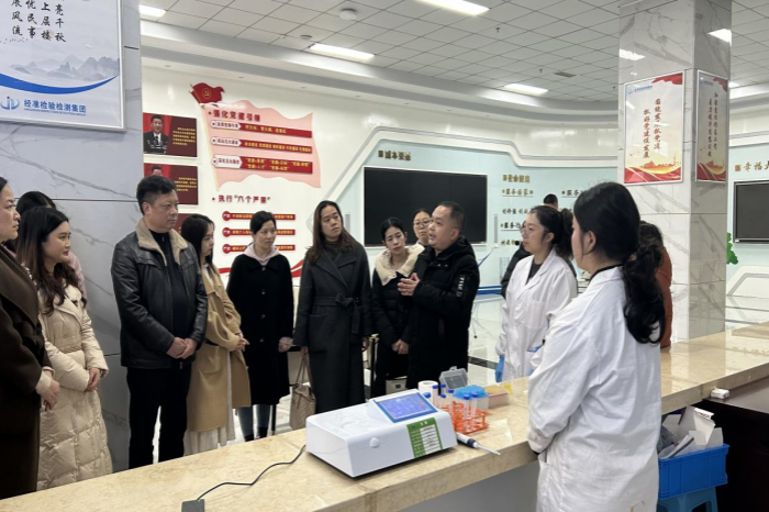 女科技工作者們先后參觀了四川經準檢測集團接樣大廳、企業文化大廳、食品檢測實驗室、環境檢測實驗室,觀看了集團宣傳片,觀摩了食品快速檢測、噪聲和空氣現場監測,聽取了預包裝食品標簽識別等介紹。