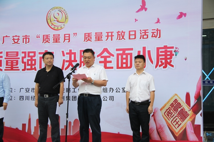 集團(tuán)公司總經(jīng)理成華明作為企業(yè)代表發(fā)表質(zhì)量宣言,表示必定牢記質(zhì)量為第一標(biāo)準(zhǔn),堅(jiān)持“科學(xué)、公正、優(yōu)質(zhì)、高效”質(zhì)量方針,共同推進(jìn)廣安高質(zhì)量發(fā)展,打造廣安質(zhì)量品牌,創(chuàng)新廣安質(zhì)量形象。