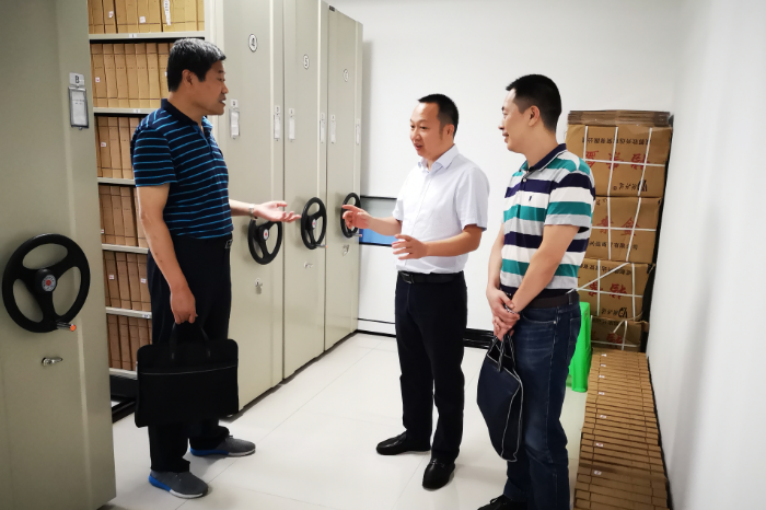 圖為總經理張毅介紹檔案室情況