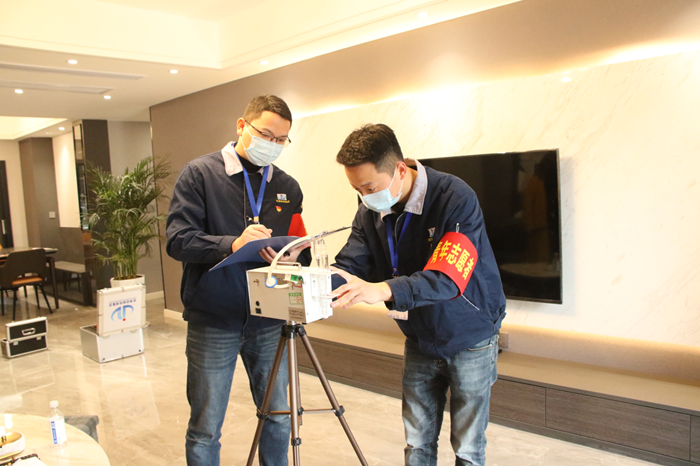 與此同時,經(jīng)準檢測集團青年志愿者服務隊來到了廣安區(qū)名門公館小區(qū),對提前預約成功的市民家中開展室內(nèi)環(huán)境公益檢測。近年來,由于室內(nèi)空氣污染引發(fā)的疾病越來越多,大家也越來越重視室內(nèi)環(huán)境健康。“室內(nèi)環(huán)境污染大多數(shù)來自裝飾材料和建筑材料,危害最大的就是甲醛、苯、TOVC等。大家在裝修時要盡量選擇綠色環(huán)保材料,裝修后要多通風,放一些吊蘭、蘆薈等綠植,加強室內(nèi)環(huán)境污染的防治。同時,大家在入住前,最好開展一次專業(yè)檢測,確保安全后再入住,也感謝大家對經(jīng)準檢測集團的信任!”經(jīng)準檢測集團室內(nèi)環(huán)境檢測負責人許超表示。
