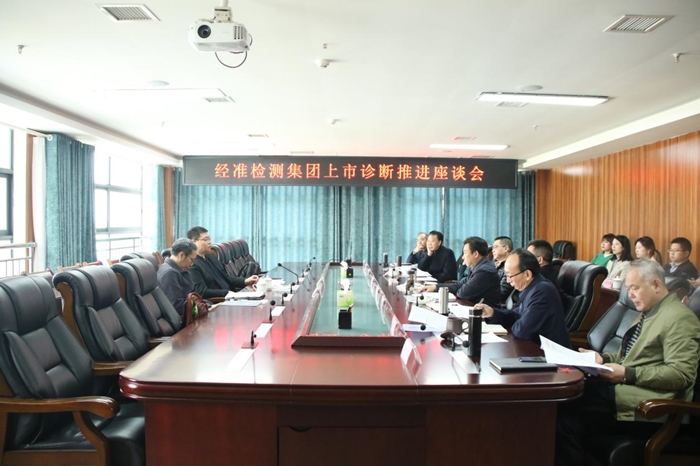 圖為深圳證券交易所西部基地蒞臨經準檢測集團座談會交流現場