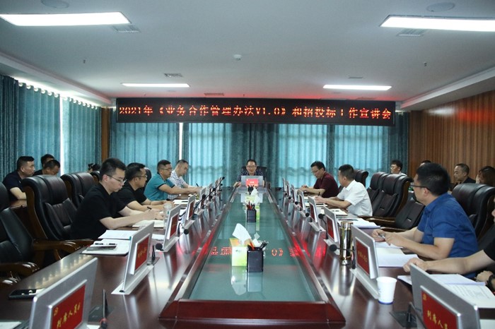6月16日上午,四川經準檢驗檢測集團股份有限公司黨委委員、副總經理吳明主持召開了2021年《業務合作管理辦法V1.0》和招投標工作宣講會。會議要求集團公司及各子(分)公司全體業務人員參加會議,認真學習新制度、新規定、新思維,按照新制度的規定和要求,準確把握、嚴格執行。