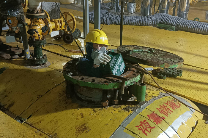 此次檢驗任務(wù)為一臺100立方液氯儲罐,時值高溫悶熱天氣,室外溫度達(dá)35攝氏度,罐內(nèi)溫度超40攝氏度。為提高現(xiàn)場檢驗工作質(zhì)量與效率,檢驗師們嚴(yán)格按照使用單位的安全要求和檢驗方案有序開展,確保從安全防護(hù)、儀器設(shè)備使用、記錄填寫等每一個環(huán)節(jié)與細(xì)節(jié)不出現(xiàn)任何疏忽與紕漏。雖然汗水濕透了全身,檢驗師們絲毫不覺得熱和累。他們以專業(yè)的技術(shù)能力和務(wù)實的工作作風(fēng)圓滿完成了此次檢驗任務(wù),確保了企業(yè)的安全投產(chǎn),贏得了一致贊譽。