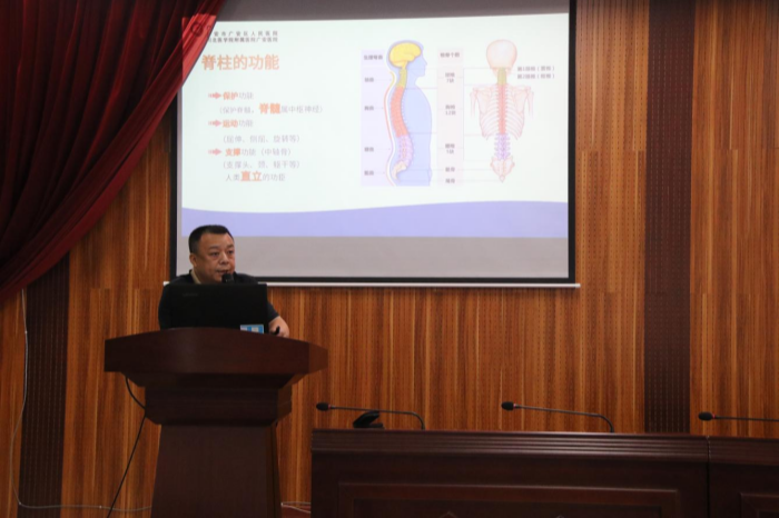 本次活動第一階段,楊新華院長聚焦現代職場職工最關心、最突出的健康問題開展主題講授,詳細地講解了長期伏案工作、不良坐姿對頸椎健康產生的影響和危害,針對如何判斷是否患上頸椎病作出相應科普。隨后,楊新華院長還現場教學示范了肩胛骨訓練操等拉伸運動,為職工提供了科學、專業的防護指導。
