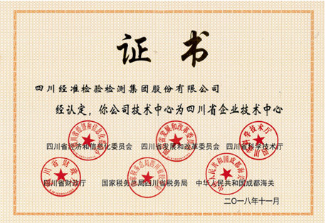 四川經準檢驗檢測集團企業技術中心于2018年11月順利通過了由四川省經濟和信息化委員會組織實施的省級企業技術中心認定,取得了認定證書和授牌。