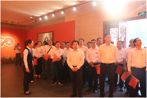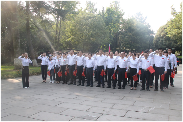 來到小平同志銅像廣場,全體黨員在小平銅像前舉行獻花儀式,并向小平銅像三鞠躬,深切緬懷小平同志的豐功偉績。隨后,全體黨員面對鮮紅的黨旗,高舉右拳,重溫入黨誓詞。