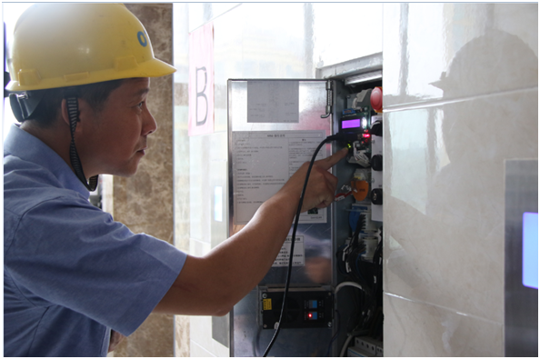 圖為“工匠杯”電梯檢測比賽活動現(xiàn)場