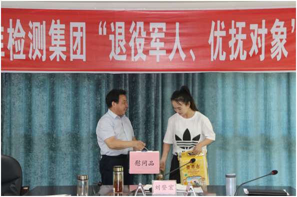 圖為集團(tuán)領(lǐng)導(dǎo)向公司退役軍人家屬發(fā)放慰問品