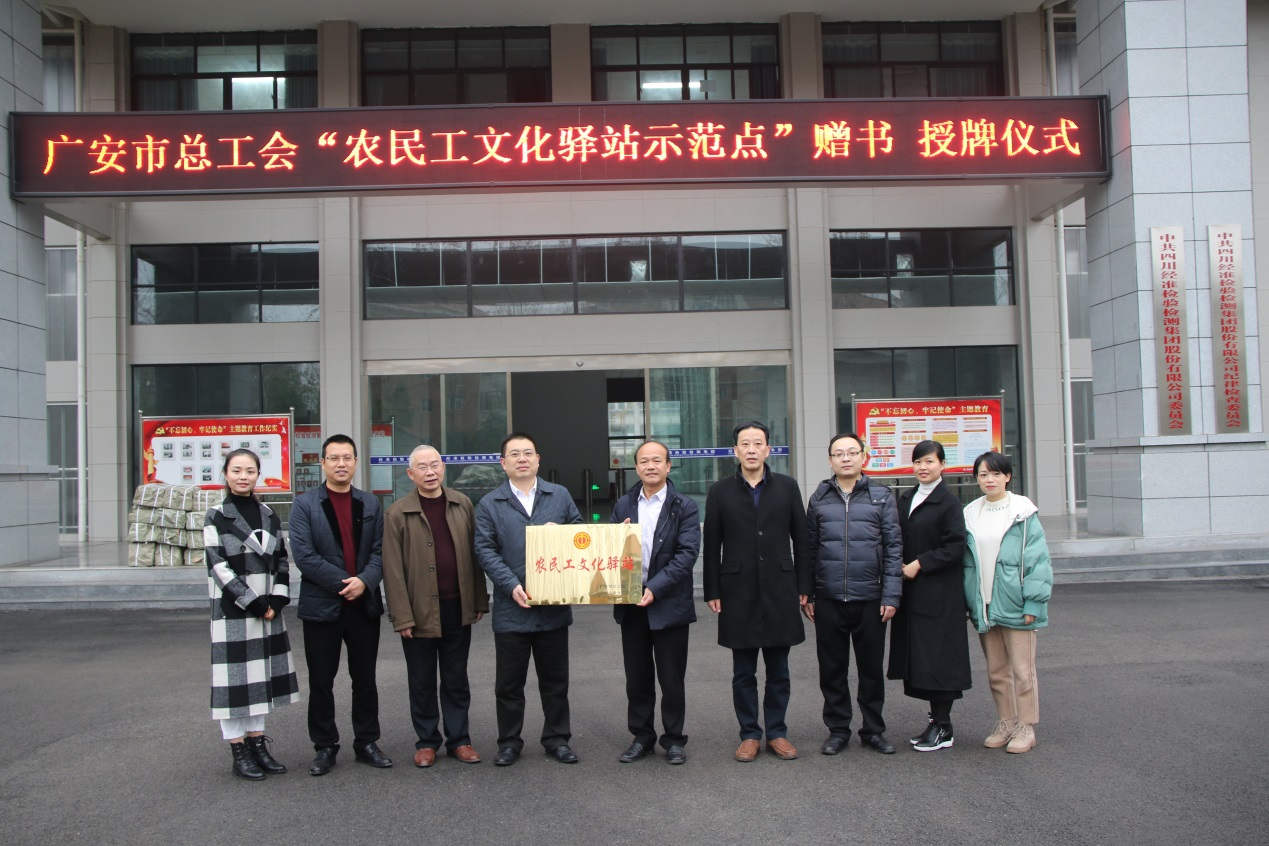 12月17日,廣安市總工會“農(nóng)民工文化驛站示范點”贈書授牌儀式在經(jīng)準檢測集團舉行,市總工會黨組書記、副主席馮中華,市總工會黨組成員、副主席、經(jīng)審會主任戈小平向經(jīng)準檢測集團農(nóng)民工文化驛站頒發(fā)了“農(nóng)民工文化驛站示范點”標牌。