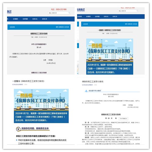 充分利用公司門戶網(wǎng)站、微信公眾號等平臺,刊發(fā)《條例》全文,轉(zhuǎn)載《條例》解讀等進(jìn)行專題宣傳,進(jìn)一步增強(qiáng)《條例》宣貫覆蓋面。同時(shí),充分利用現(xiàn)有資源,積極營造《條例》宣貫濃厚氛圍,編寫“保障農(nóng)民工工資支付,維護(hù)農(nóng)民工合法權(quán)益”、“落實(shí)《保障農(nóng)民工工資支付條例》,讓農(nóng)民工告別‘憂酬煩薪’”、“企業(yè)守法誠信,依法依規(guī)足額支付農(nóng)民工工資”等宣傳標(biāo)語,在集團(tuán)及各單位LED屏循環(huán)播放,切實(shí)提升《條例》知曉率。