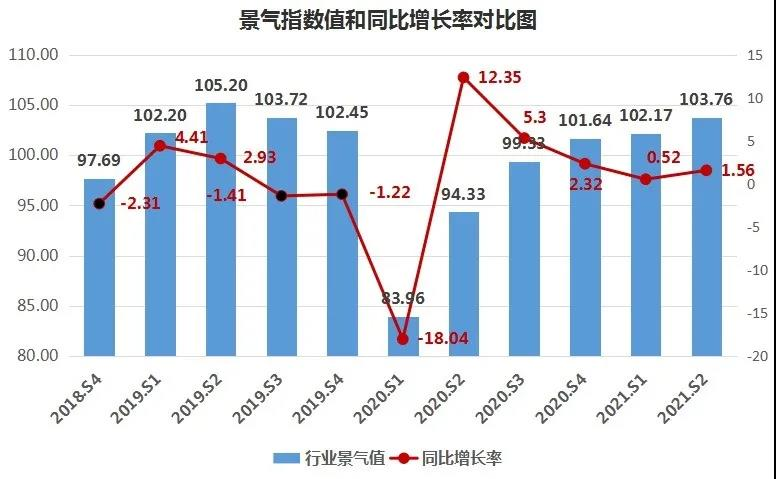第二季度景氣指數達到103.76,環比增長1.56%,同比增長10.0%