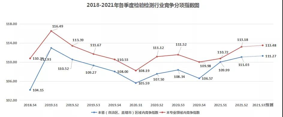 2021年第三季度檢驗檢測行業景氣指數機構預測值為106.11