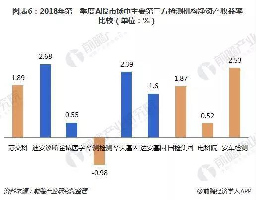 2018年第一季度,迪安診斷的凈資產(chǎn)收益率相對(duì)最高,安車檢測(cè)、華大基因的凈資產(chǎn)收益率也都超過了2.3%,自有資本獲得收益效率最高。